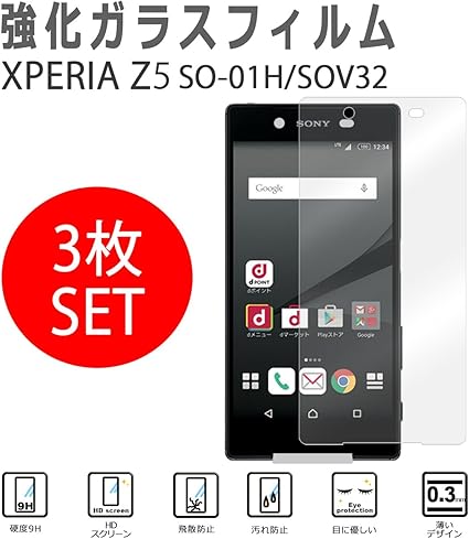 Amazon 3枚セット Xperia Z5 So 01h Sov32 プレミアム強化ガラス
