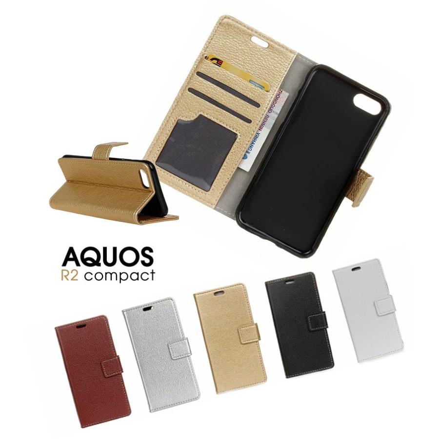 Aquos R2 Compact ケース 手帳型 レザー シンプル おしゃれ Puレザー