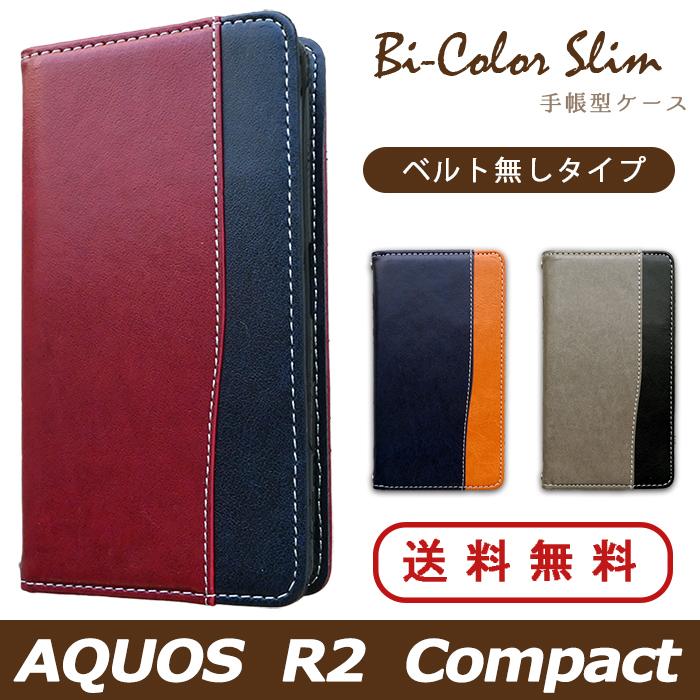 Aquos R2 Compact ケース カバー 手帳 手帳型 803sh バイカラースリム
