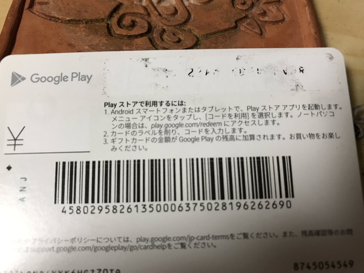 Google Play ギフトカードのコードが読みとれない グーグルに