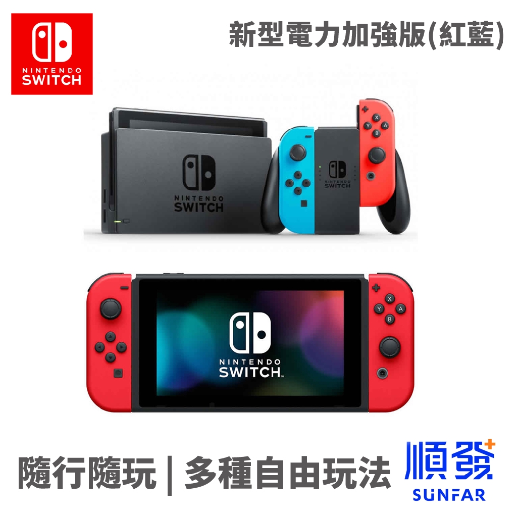 新型續航力加強版 任天堂switch主機電光紅藍色 台灣公司貨 瑪利