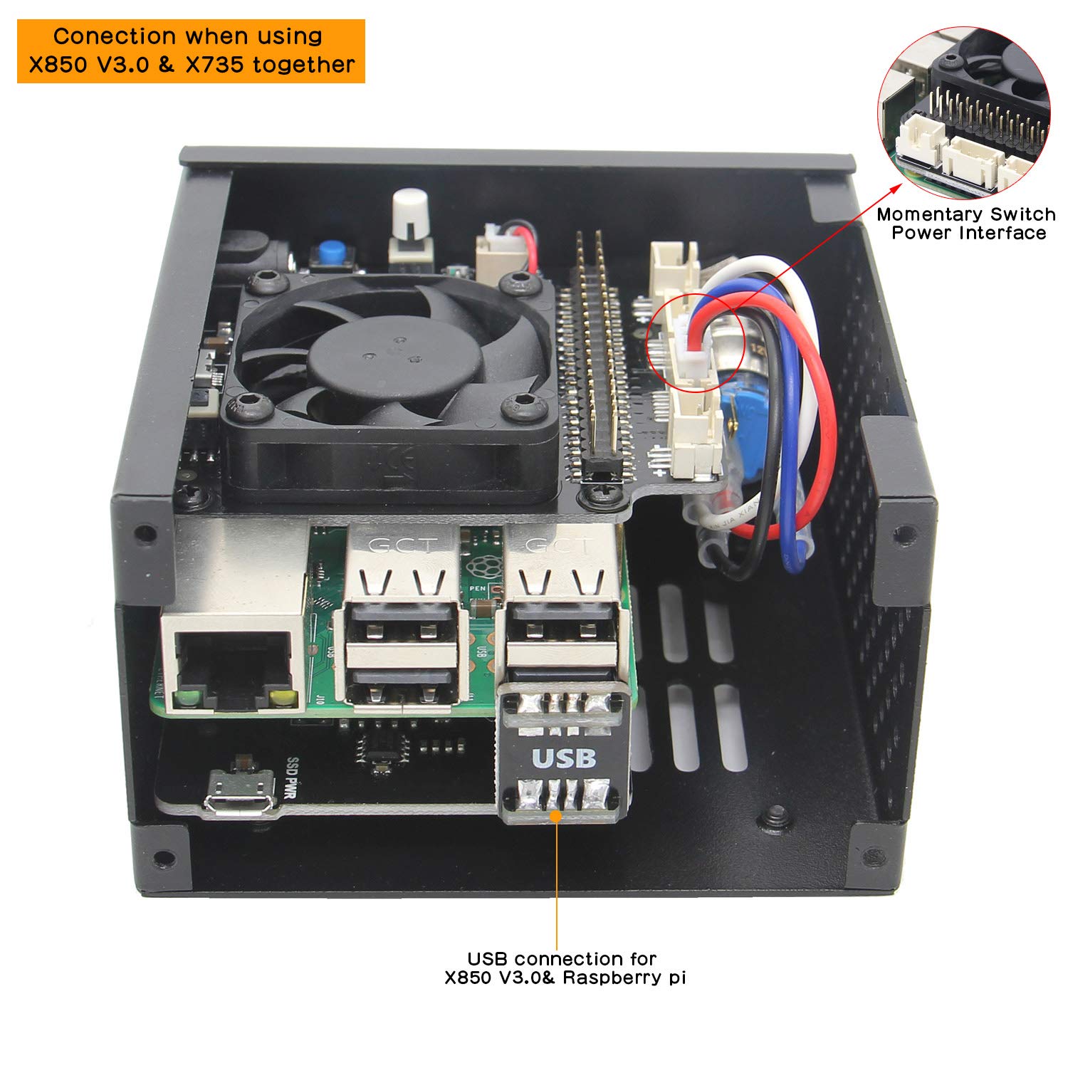 Geekworm Raspberry Pi 4 X825 Metal Case Power Switch Cooling Fan
