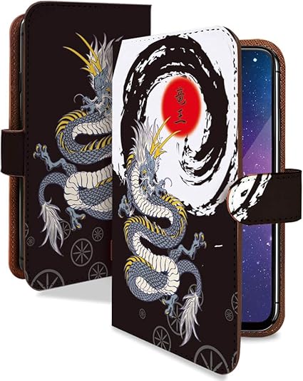 Amazon Co Jp Aquos R2 Sh 03k ケース 手帳型 龍 黒 和柄 和風