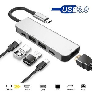 8 In1 Usb C To Type C 3 Usb 3 0 Hub Hdmi Rj45 Ethernet Micro Sdtf Otg Adapter Ebay