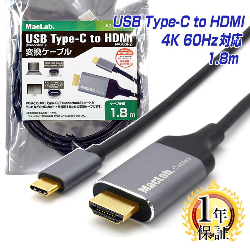 ケーブル Hdmi タイプc Typec 変換アダプター 1 8m Maclab 4k 60hz